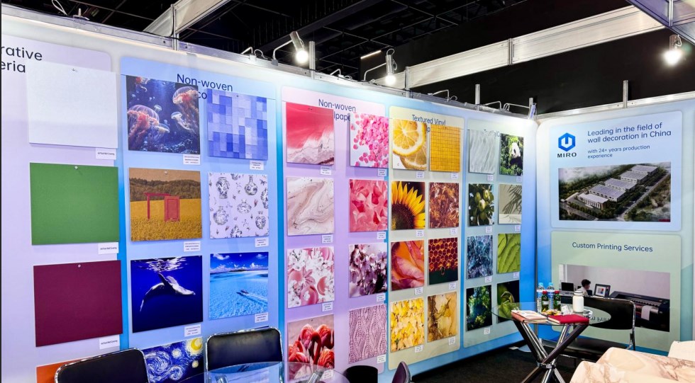 Durante la exposición, el stand de MIRO atrajo un gran interés por parte de los especialistas en impresión y fabricantes de papel pintado locales. Los visitantes expresaron gran entusiasmo por los sustratos de impresión sostenibles y los revestimientos de paredes pintados con látex de primera calidad de MIRO.
